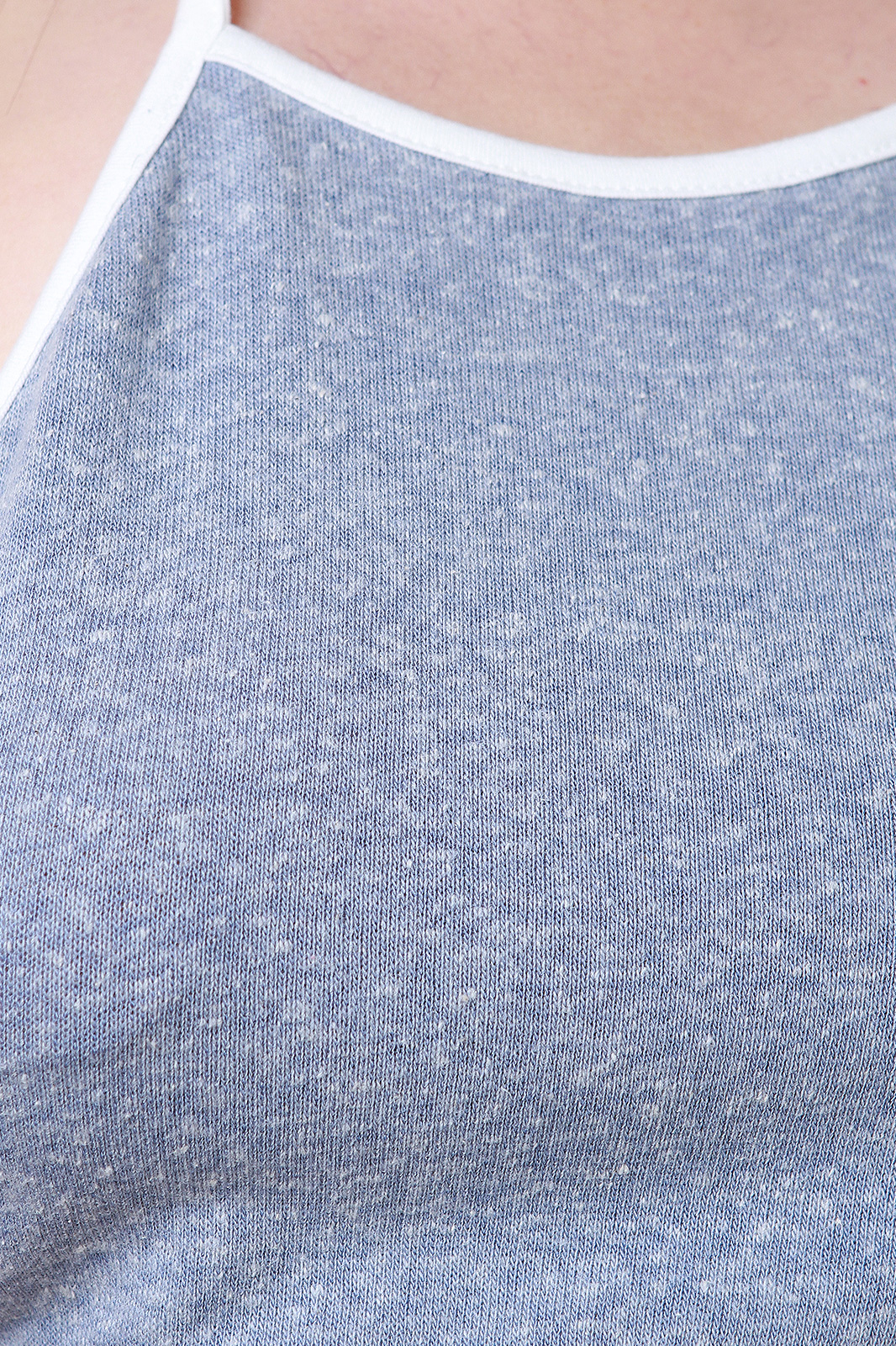 This matching set features soft melange knit and contrast trim. Crop top features self-tie halter design. Shorts feature elasticized waist and dolphin hem. Accessories sold separately. Made in USA. 60% Polyester, 30% Rayon, 10% Cotton.